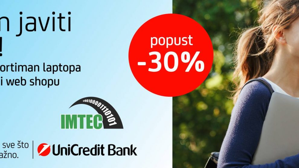 UniCredit Bank i IMTEC vam ovog ljeta daruju najbolji popust Plaćajte UniCredit Mastercard karticama na IMTEC prodajnim mjestima ili webshopu (imtec.ba) i ostvarite popustena cjelokupan asortiman laptopa! IMTEC, domaća IT kompanija, nastoji tehnologiju približiti ljudima. Uposlenici IMTEC...