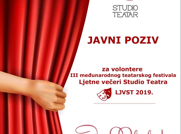 Poziv za volontere: postani dio kreativnog tima Festivala ili Ljetne večeri Studio Teatra – Pozivamo sve one koji svojim idejama, radom i angažmanom žele dati doprinos na realizaciji festivala Ljetne večeri Studio Teatra, da postanu dio našeg volonterskog tima. Ako ste ambiciozni...