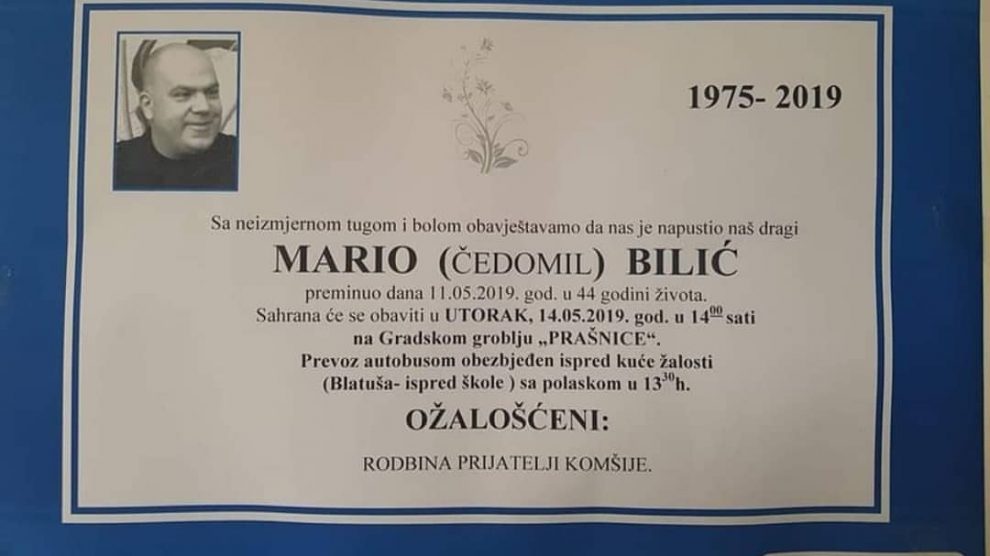 Sahrana Marija Bilića u utorak, pročitajte oproštajnu poruku Sajjrinog oca Mirsada Pripadnik MUP-a ZDK Mario Bilić biće sahranjen u utorak u 14 sati na Prašnicama. Preminuo je u 44.godini, a njegiva iznenadna smrt šokirala je sve koji su ga poznavali. – Dragi Mario. Hvala ti što si...