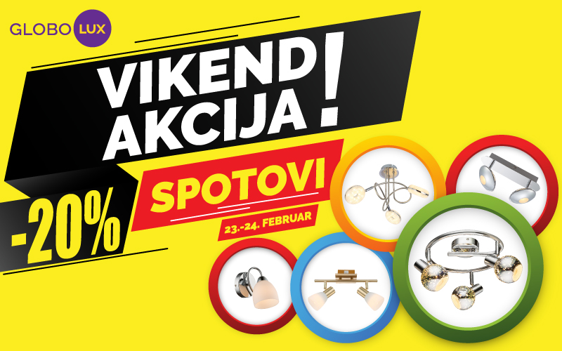 FOTO: Vikend akcija u Globo Luxu! – Vikend je pred nama, a to znači samo jedno, vrijeme je za SUPER cijene! Popust od čak -20%, na sve modele spotova, više je nego dovoljan razlog da i ovog vikenda Vaše odredište bude upravo Globo Lux! Samo 09. i 10. februara! Vikend akcija, prilika...