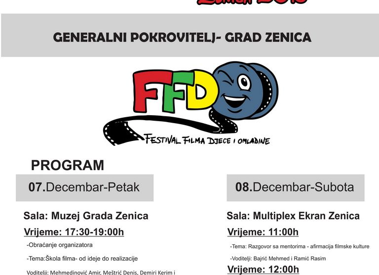 Dvadeseti Festival filma djece i omladine „Zenica 2018“ – Pozivamo vas na 20. Festival filma djece i omladine „Zenica 2018“, koji će se održati u subotu, 08.12.2018 godine sa početkom u 11:00h u sali Multiplex Ekran Zenica. Ceremonija otvaranja Festivala planirala je u 12:00h...