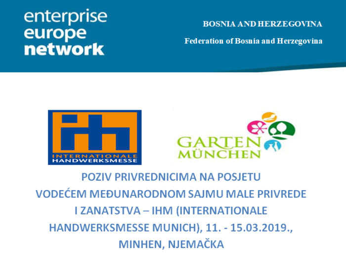 ZEDA: poziv privrednicima za posjetu vodećem Međunarodnom sajmu male privrede i zanatstva – Minhen – Agencija ZEDA u koorganizaciji sa EEN partnerom iz Njemačke – Obrtničkom komorom za München i Gornju Bavarsku (HANDWERKSKAMMER FUR MUNCHEN UND OBERBAYERN –MUNCHEN), uz...