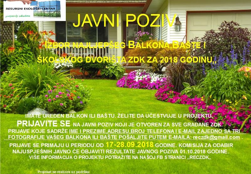 Javni poziv: Izbor najljepšeg balkona, bašte i školskog dvorišta ZDK za 2018. – Imate uređen balkon ili baštu, želite da učestvujete u projektu? Prijavite se na Javni poziv koji je otvoren za sve građane ZDK. Prijave koje sadrže ime i prezime, adresu, broj telefona i e-mail...