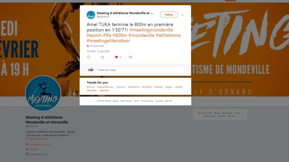 Amel Tuka pobjedio na 800 metara u francuskom Mondevilu – Amel Tuka, naš sugrađanin i bh. najbolji atletičar, nakon što je 27. januara je u Padovi na atletskom mitingu otrčao prvu utrku u sezoni na 400 metara, koju je pobjedio istrčavši je u vremenu 47.29, večeras (subota, 2.2.2) je...