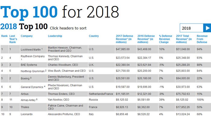 Ovo je 100 najvećih u svjetskoj vojnoj industriji – Na ovogodišnjoj listi najvećih kompanija proizvođača naoružanja i vojne opreme čak je 40 američkih kompanija. Američki magazin specijaliziran za vojnu industriju Defense News objavio je svoju listu sto najvećih kompanija u...