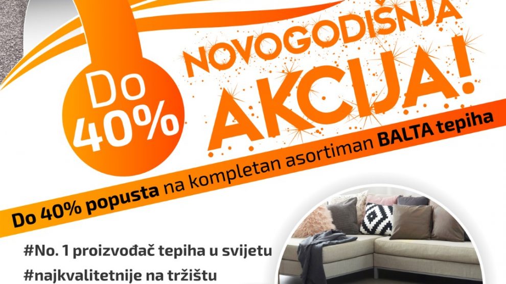 Novogodišnja akcija Balta tepiha – Cijenjeni kupci kompanije Almy, za Vas smo pripremili novu veliku novogodišnju akciju u salonu Ceralmyco! Iskoristite nevjerovatni popust i do 40% na kompletan asortiman Balta tepiha. Posjetite nas u Zenici, na adresi Vrandučka bb u upravnoj zgradi...