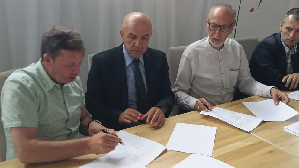 Ministar za rad, socijalnu politiku i izbjeglice ZDK Nurđehan Šahinović i direktor preduzeća “Hunes” d.o.o. Žepče Nesib Husičić, u prisustvu premijera Miralema Galijaševića, potpisali su ugovor o izvođenju radova na izgradnji rezervoara za vodu za naselje Šahmani u MZ Željezno...
