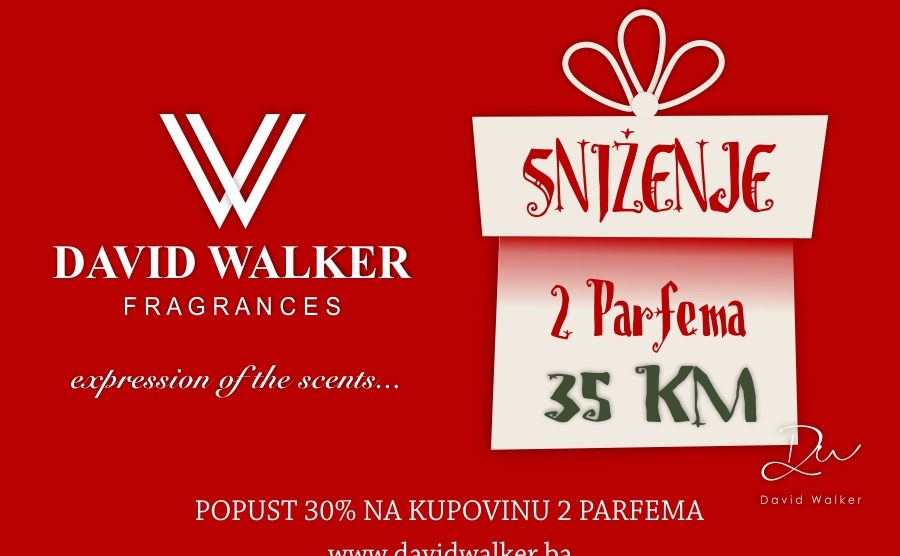Veliko “Novogodišnje sniženje parfema” iz kolekcije “Exclusive” – Uštedite 30% na parfeme David Walker. U ponudi od 350 različitih mirisnih nota izaberite bilo koja 2 parfema od 50ml za “35 KM”. Sniženje traje do kraja godine. Za više detalja pogledajte kompletnu ponudu na Facebook...