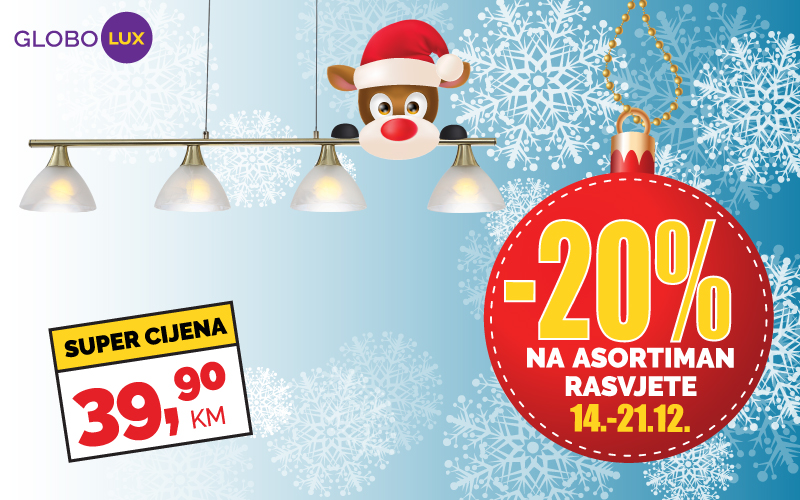 Praznični popust u Globo Lux-u! – Praznična groznica se nastavlja! Da praznike dočekate spremni, samo za Vas, priredili smo čak 7 DANA prazničnih cijena! Očekuje Vas SUPER popust, od -20%, na cjelokupan asortiman rasvjete! Visilice, plafonjere, spotovi, podne i stolne lampe, sve na...