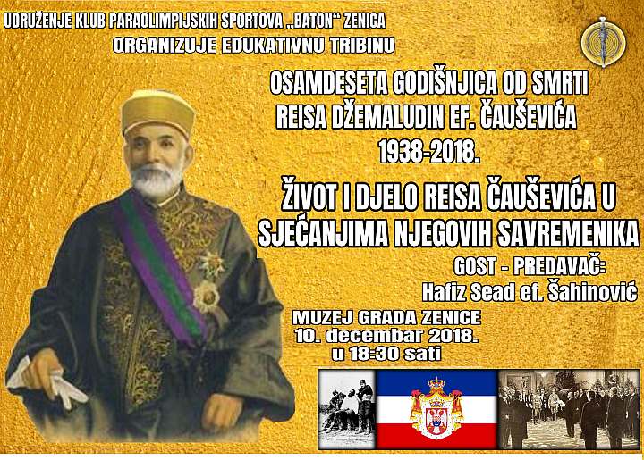 KPS “Baton” Zenica: edukativna tribina – osamdeset godina od smrti reisa Džemaludin ef. Čauševića – U cilju resocijalizacije, edukacije, kulturne afirmacije te isticanja svih pozitivnih vrijednosti naše domovine i isticanja važnosti znamenitih ličnosti iz...