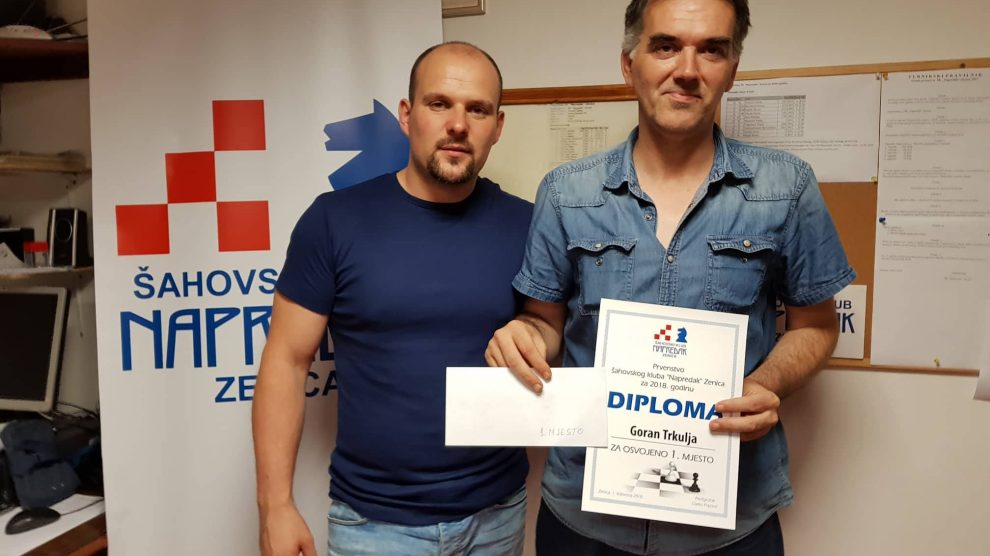 FOTO: Goran Trkulja prvak ŠK Napredak za 2018.godinu – U prostorijama ŠK „Napredak“, koja se nalazi u Hrvatskom domu „Kralj Tomislav“ u Zenici, Šahovski klub „Napredak“ Zenica organizovao je prvenstvo kluba ŠK „Napredak“ za 2018.godinu, koje se igralo od 16.7. do 31.7.2018.godine...