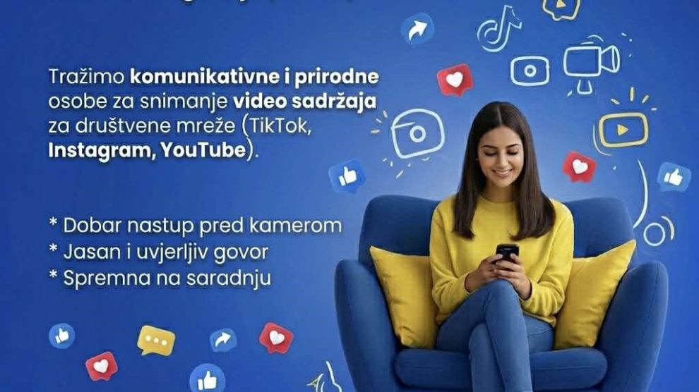 Tražimo osobe za snimanje video sadržaja – New Trend Agencija (Zenica) New Trend Agencija traži komunikativne, prirodne i prezentabilne osobe za snimanje video sadržaja za društvene mreže. Sadržaj koji se snima koristi se za potrebe digitalnog marketinga i objave na platformama kao što su...