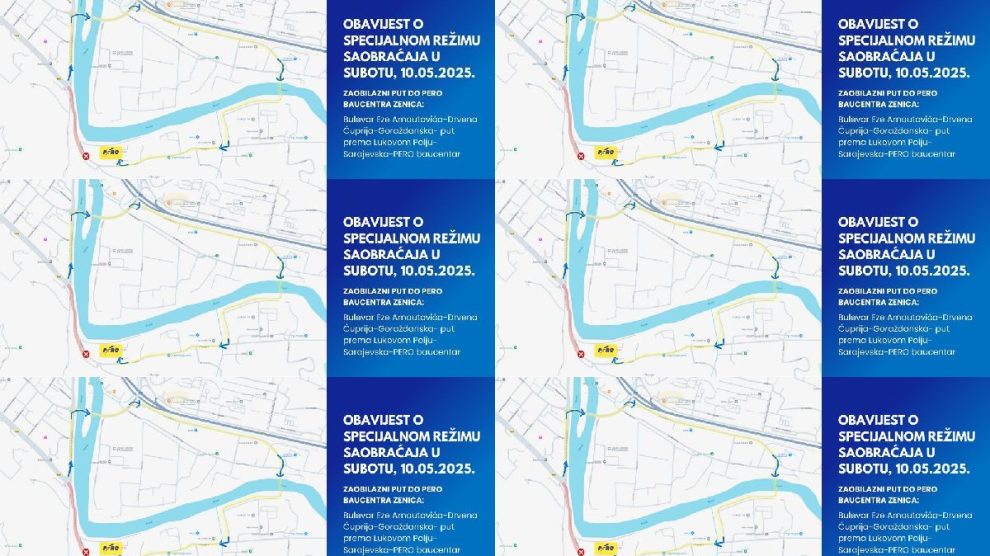 U subotu, 10.05.2025. godine, zbog radova na rekonstrukciji regionalne ceste R445 Zenica–Lašva, saobraćaj prema PERO baucentru Zenica putem GGM-a bit će obustavljen u periodu od 8:00 do 16:00 sati. U ovom periodu, pristup baucentru bit će moguć alternativnim putem kroz Lukovo Polje...