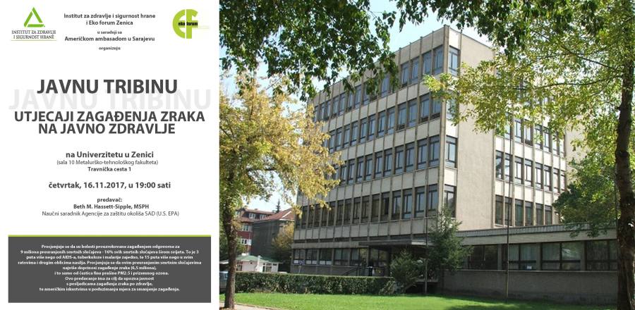 INZ i EFZ: Utjecaji zagađenja zraka na javno zdravlje – četvrtak u 19 sati – sala Metalurško-tehnološkog fakulteta – Institut za zdravlje i sigurnost hrane ZDK i Eko forum Zenica, u saradnji sa Američkom ambasadom u Sarajevu organizuju javnu tirbinu “Utjecaji...