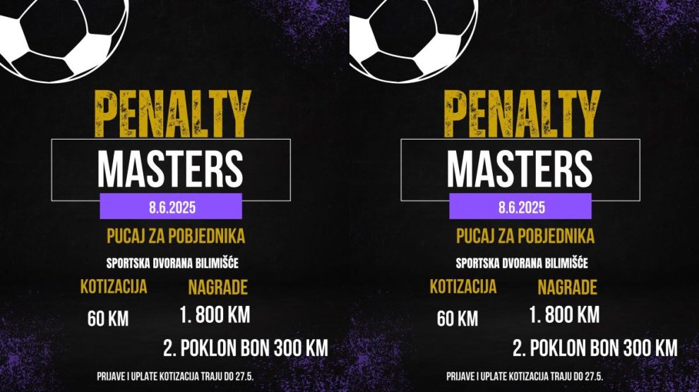 Ovo je do sada neviđeno! Mladi organizatori iz Zenice, Anel Kobić i Amar Bandić , su svojim trudom i entuzijazmom uspjeli da organizuju prvo takmičenje u penalima pod imenom “Penalty Masters” u Bosni i Hercegovini! Ovaj inovativni događaj, koji se održava u sportskoj dvorani Bilimišće...