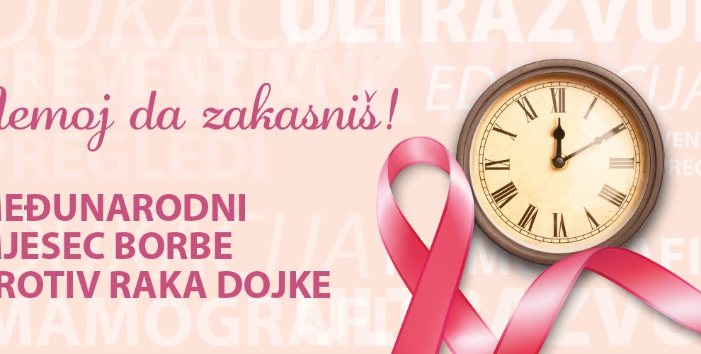 Oktobar je mjesec borbe protiv raka dojke. Bosna i Hercegovina ne posjeduje nacionalni registar za rak, ali se smatra da se u našoj zemlji godišnje dijagnostikuje oko 1.300 novooboljelih od raka dojke, a oko 500 žena svake godine izgubi bitku za život. Institut za zdravlje i sigurnost...