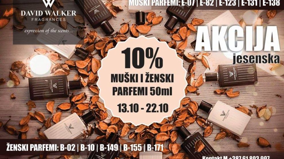Jesenska akcija “10%” – David Walker Fragrances | Mirisi | Parfemi – JESENSKA AKCIJA NA PARFEME 50ml |10%| Od 13.10. do 20.10.2017.g Ukoliko još niste odabrali mirisne jesenske note, David Walker Parumerija je za Vas odabrala: Ženske parfeme od 50ml: B-02 – Mirisna nota LADY...