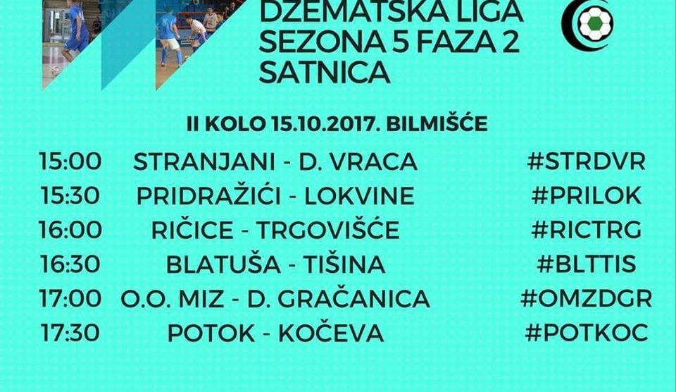 Najava drugog kola 2.faze džematske lige – U nedjelju 15.10.2017.godine na rasporedu je drugo kolo, 2.faze takmičenja u džematskoj ligi. Utakmice se igraju u dvorani Bilmišće od 15 do 18 sati. Kako najavljuju iz Organizacionog odbora ovo kolo, pored derbija kola i nagrade Sultan...