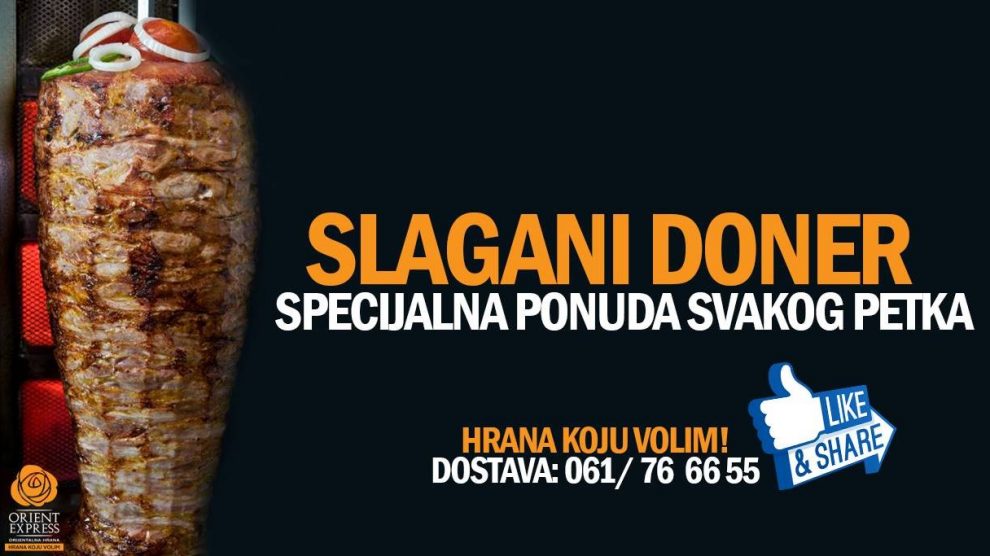 NOVO u Orient Expressu – Slagani doner! – Od sada samo u Orient Expressu svakoga petka možete uživati u specijalnoj ponudi: slaganom doneru. Posjetite nas na adresi Muhameda Seida Serdarevića 1 ili poručite Vaš slagani doner putem telefona 061 766 555. U toku je i nagrada igra...