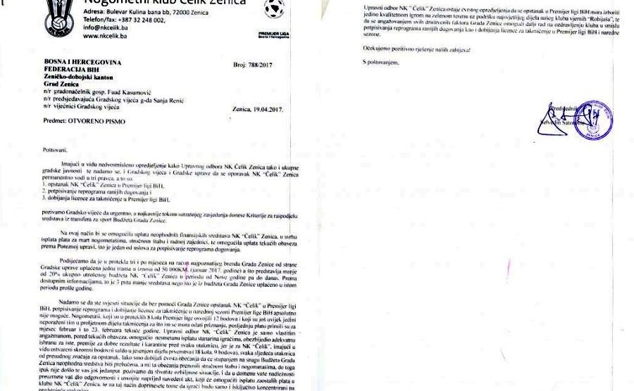 NK Čelik: Otvoreno pismo rukovodstvu Grada Zenice – Predsjednik NK Čelik Zenica gosp. Selvedin Šatorović je danas u ime Upravnog odbora kluba uputio otvoreno pismo rukovodstvu Grada Zenice povodom trenutne finansijske situacije u klubu glede sanacije tekućih obaveza kao i ulaska u...