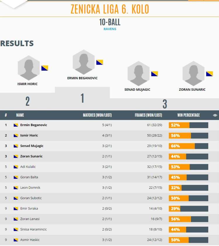 Zenička liga – 6. kolo: Beganović najbolje igrao “desetku”, slijede tri kola za prvake Grada po disciplinama – U prostorijama sportskog bilijar kluba Ravens u Zenici održano je šesto kolo Zeničke lige u bilijaru. Igrana je disciplina DESETKA u kojoj je najviše...