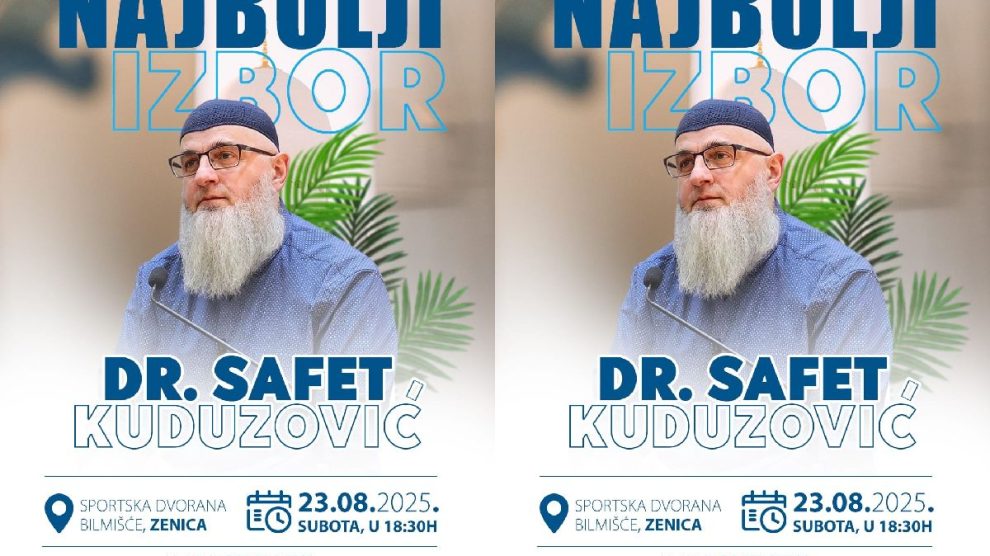 NAJAVA: Predavanje dr. Safeta Kuduzovića u Sportskoj dvorani Bilmišće- Tema predavanja nosi naziv “Najbolji izbor”, a organizatori ističu da je riječ o temi koja će biti od velikog značaja za širu društvenu zajednicu. Očekuje se prisustvo velikog broja posjetilaca iz Zenice i drugih...
