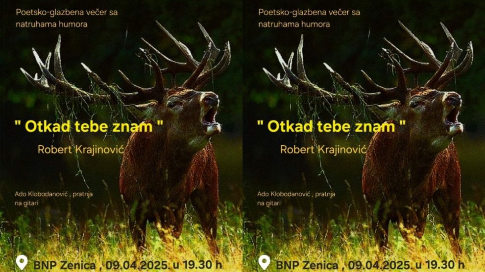 U Bosanskom narodnom pozorištu Zenica će u srijedu, 9. aprila u okviru kulturne 28. međunarodne kulturne manifestacije „Zeničko proljeće“ 2025 biti održana održana Poetsko- glazbena večer sa natruhama humora „Otkad tebe znam“ autora Roberta Krajinovića uz pratnju prof. Ade Klobodanovića...