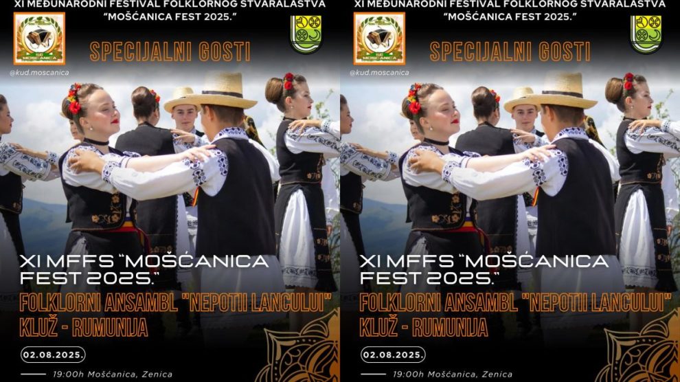 Folklorni ansambl “Nepotii Lancului” iz rumunskog grada Kluža specijalni je gost XI Međunarodnog festivala folklornog stvaralaštva „Mošćanica Fest 2025.“, koji će biti održan 2. augusta 2025. godine u Zenici, na stadionu Mošćanica, s početkom u 19 sati. Ovaj renomirani ansambl...