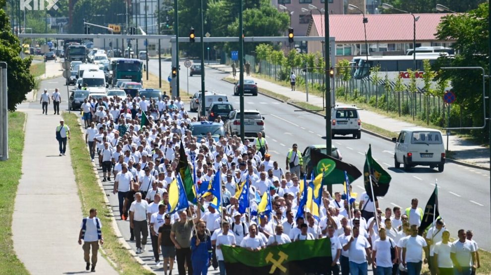 Više od 500 nezadovoljnih rudara stiglo je danas u 11 sati ispred zgrade Vlade Federacije BiH u Sarajevu. Oni su u koloni prošetali od željezničke stanice do zgrade vlade, a protesti su počeli himnom Bosne i Hercegovinom. Saobraćaj je u ulici Hamdije Čemerlića obustavljen. Zenički rudari...