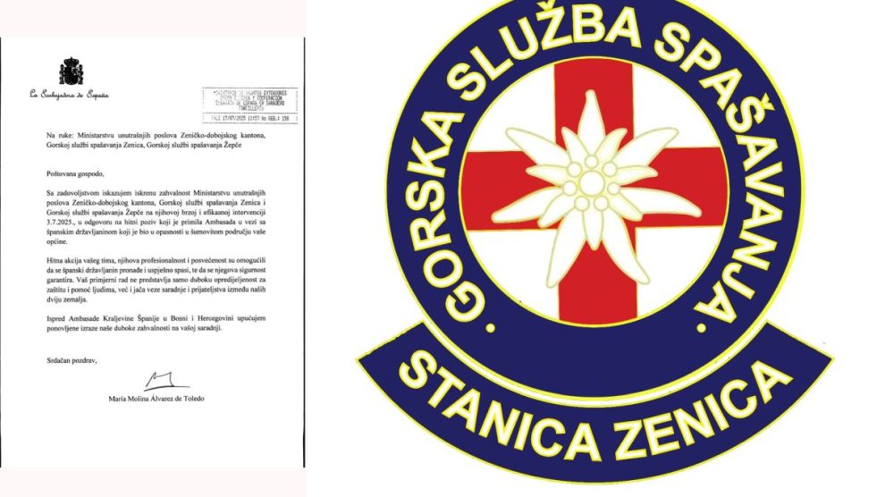 Gorska služba spašavanja Stanica Zenica primila je zvaničnu zahvalnicu od Ambasade Kraljevine Španije u Bosni i Hercegovini, povodom uspješno provedene potrage za nestalim državljaninom Španije na teritoriji Zeničko-dobojskog kantona. U saopćenju GSS Zenica navodi se da ova gesta...