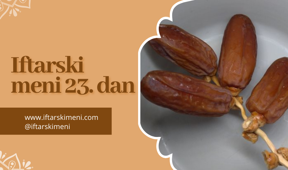 Prijedlozi i recepti za iftarski meni: Naši prijatelji sa web stranice Iftarski meni napravili su za cijeli mjesec ramazan prijedloge i recepte za svaki dan. PREDJELA Čorba od tikvice Supa od brokule Čorba od suhih gljiva GLAVNA JELA Musaka od krompira i šampinjona Krompir ploške sa...