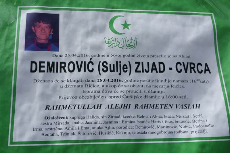 Zauvijek nas je napustio Zijad Demirović Cvrca – U četvrtak je na mezarju Ričice obavljena dženaza i ukop 56-to godišnjeg Zijada Demirovića Cvrce. Crvca je dugogodišnji igrač malonogometnog kluba Drugari i njegovi saigrači i prijatelji organizovano su prisustvovali dženazi i ukopu...