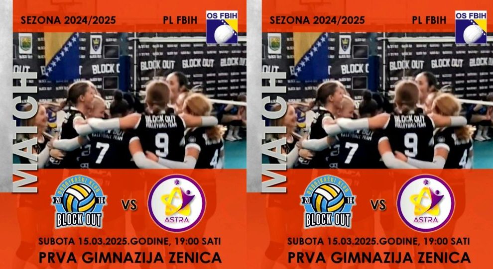 Zeničke odbojkašice igraju na domaćem terenu odnosno u dvorani Prve Gimnazije Zenica predvođeni trenerom Harisom Hasanicom, u goste im dolazi OK “ASTRA” Sarajevo Zenička ekipa BLOCK OUT je jedina u BiH ove sezone ušla u zvanično takmičenje PLFBIH sa gotovo kadetskom ekipom koju čine...
