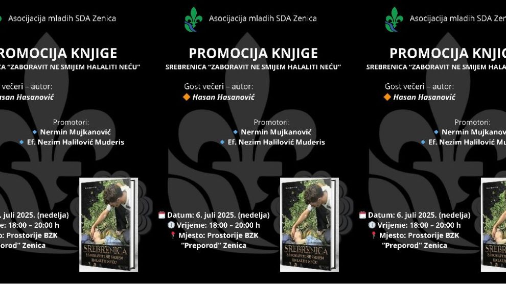 U sklopu obilježavanja 30. godišnjice genocida u Srebrenici, Asocijacija mladih SDA Zenica organizuje promociju knjige „Srebrenica – zaboraviti ne smijem, halaliti neću“, autora Hasana Hasanovića – preživjelog genocida, svjedoka boli, ali i glasnog čuvara istine o julu 1995. godine...