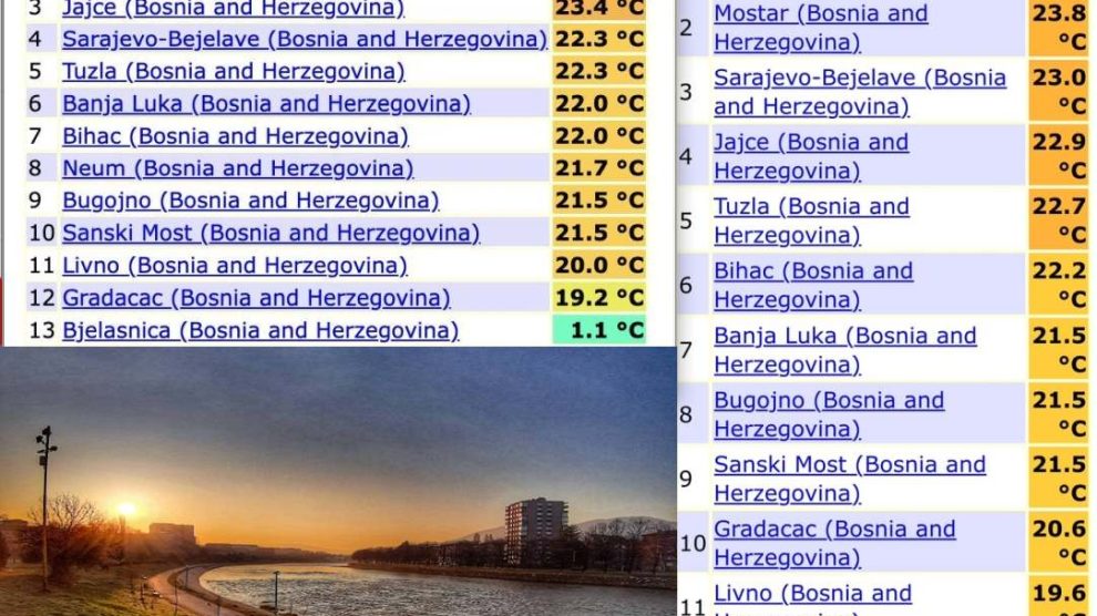 Kako je to i naznačeno jučer, Bosna i Hercegovina je zabilježila svoj prvi ljetni dan (maksimalna temperatura >25.0 °C) u 2025. godini. Zenica je danas drugi dan zaredom ponovo najtoplija sa 25.1 °C, objavio je meteorolog Nedim Sladić. Jučer, 06. marta 2025. godine, temperature zraka u...
