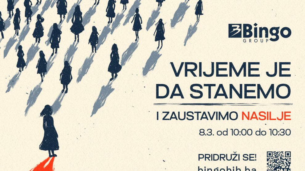Kampanji Bingo Group protiv nasilja nad ženama za 24 sata se pridužilo više od 10.000 građana- Vrijeme je da stanemo i zaustavimo nasilje! U posljednja 24 sata više od 10.000 građana Bosne i Hercegovine je nakratko stalo kako bi podržali Inicijativu za uvođenje femicida u Krivični zakon...
