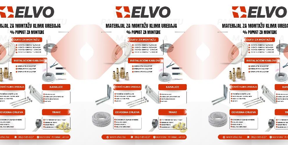 ELVO D.O.O ZENICA- Specijalizirana prodavnica malo i veleprodaje sa kompletnim asortimanom za elektroinstalacijske radove. Nudimo sve što je potrebno za montažu klima uređaja. U našoj ponudi možete pronaći: bakarne cijevi za montažu, sve vrste instalacionih kablova, nosače klima uređaja...