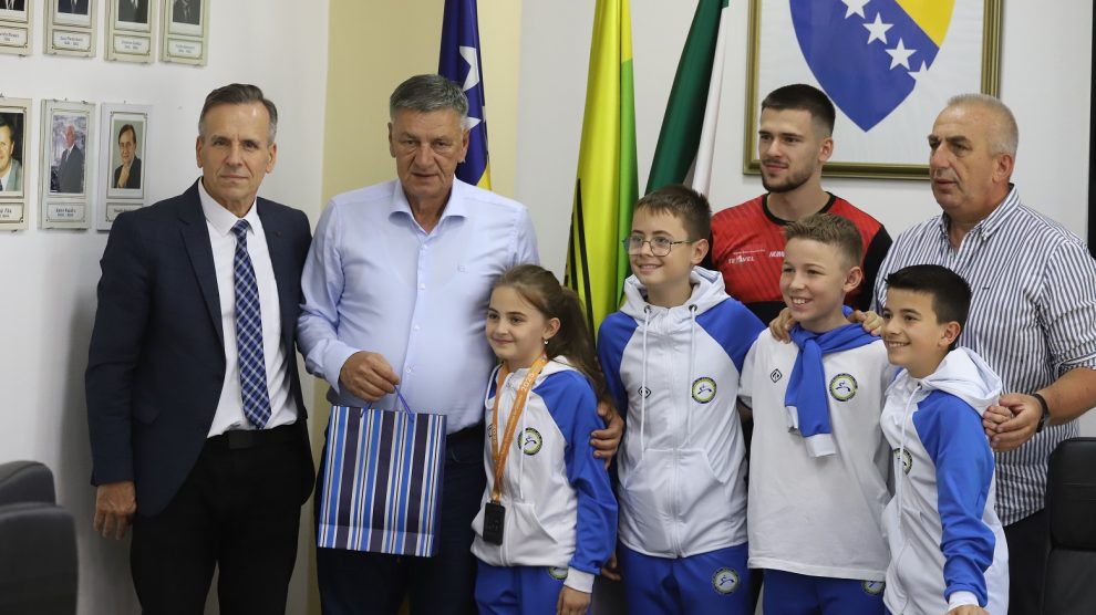 Gradonačelnik Zenice, Fuad Kasumović, upriličio je danas prijem za predstavnike Karate kluba „Internacional“ Zenica, povodom izvanrednog nastupa na Balkanskom prvenstvu održanom u Baru. Delegaciju su činili predsjednik kluba Dževad Begić, trener Muharem Keleštura te mladi bh...
