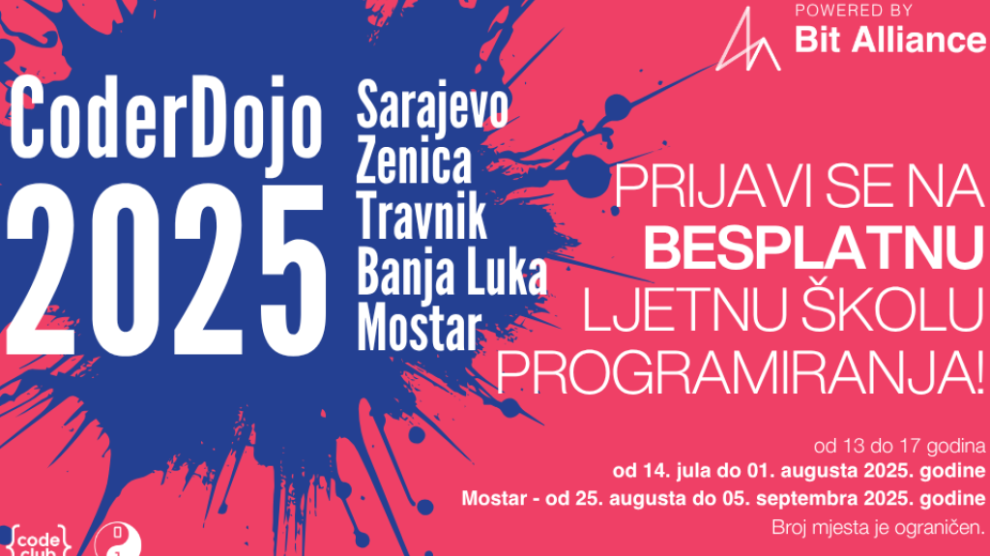 Bit Alijansa, vodeća asocijacija IT kompanija u Bosni i Hercegovini, otvorila je prijave za “CoderDojo 2025” – besplatnu ljetnu školu programiranja za djecu i mlade uzrasta od 13 do 17 godina koja će biti realizovana u Sarajevu, Banjoj Luci, Mostaru, Zenici i Travniku...