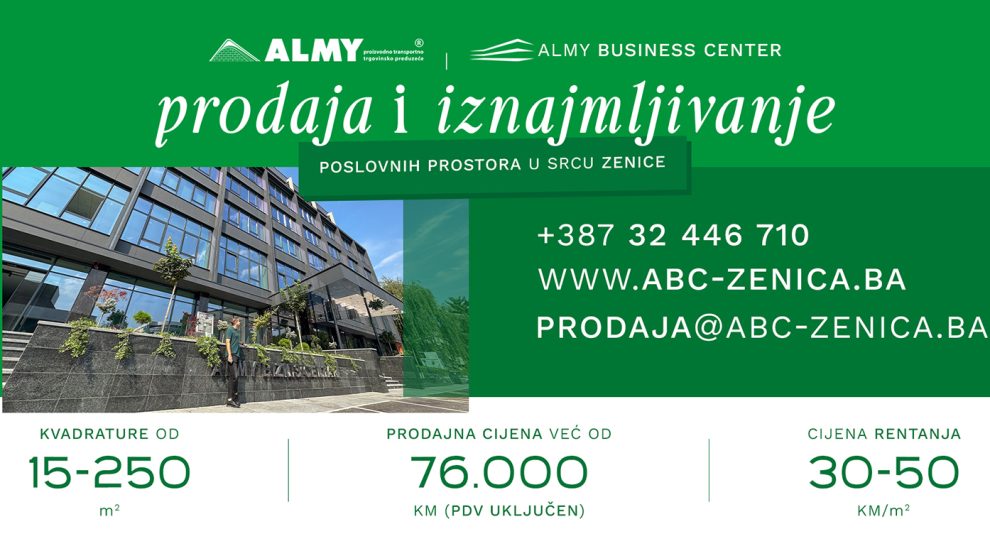POSLOVNI PROSTORI U SRCU ZENICE – ALMY BUSINESS CENTER Tražite idealan poslovni prostor na odličnoj lokaciji? Almy Business Center nudi prodaju i iznajmljivanje modernih poslovnih prostora u samom centru Zenice, na adresi Trg Bosne i Hercegovine 1, Zenica 72000. ✅ Kvadrature: Od 15 m² do...