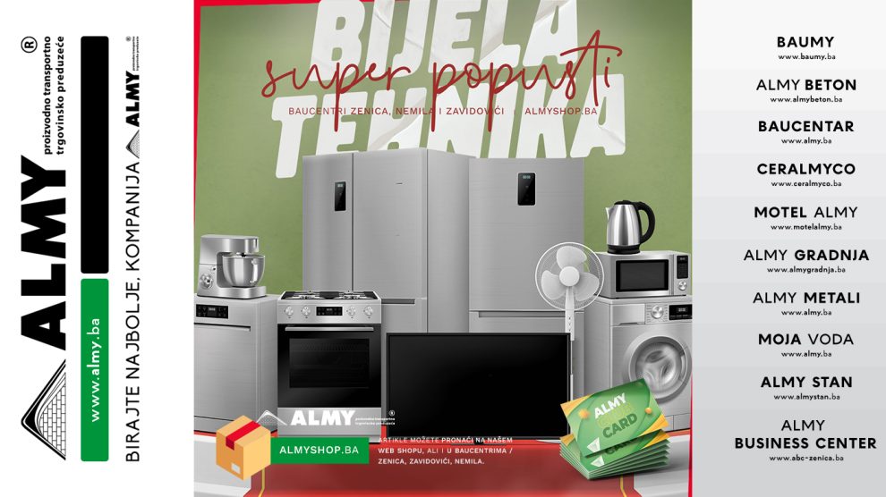 SUPER POPUSTI NA BIJELU TEHNIKU U ALMY BAUCENTRIMA I NA ALMY WEB SHOPU: Sve što vam treba za dom – sada po sniženim cijenama! Pravo je vrijeme da osvježite svoj dom i uštedite uz posebne popuste na najtraženiju bijelu tehniku! Bilo da opremate kuhinju, dnevni boravak ili rješavate ljetne...