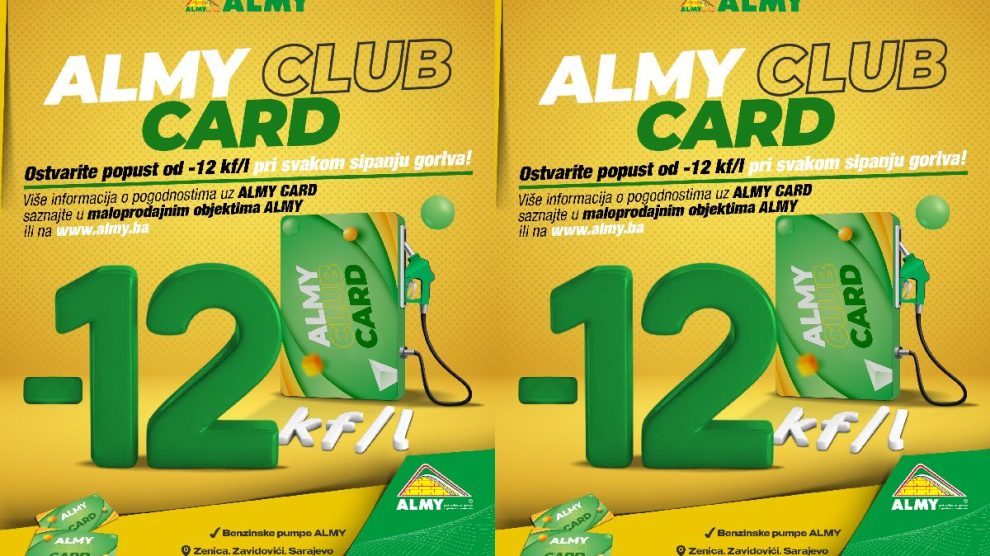 ✅ ALMY CLUB CARD ✅ Ekskluzivni način za ostvarivanje popusta pri kupovini u ALMY maloprodajnim objektima… ✅ Da li već imate svoju ALMY CLUB karticu? ✅ Više informacija možete saznati na ✅ Posjetite nas u ALMY Baucentrima u Zenici, Zavidovićima i Nemili, ALMY benzinskim pumpama u...