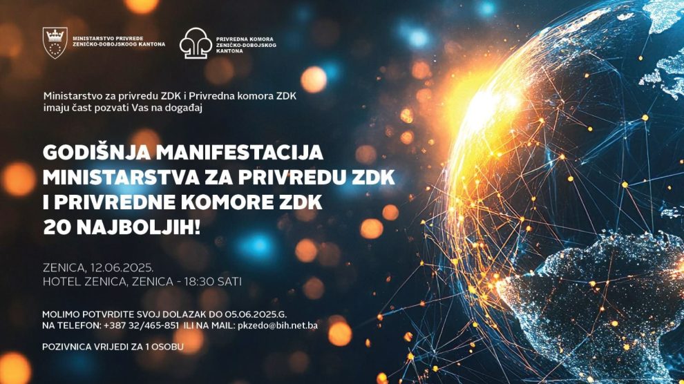 U organizaciji Ministarstva za privredu Zeničko-dobojskog kantona i Privredne komore Zeničko-dobojskog kantona, u četvrtak 12. juna 2026. godine, s početkom u 18:30 sati, u Hotelu Zenica u Zenici, bit će održana tradicionalna Godišnja manifestacija “20 najboljih”. –...