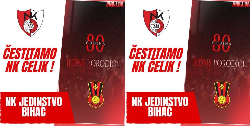 Nogometni klub Jedinstvo iz Bihaća uputio je iskrene čestitke Nogometnom klubu Čelik Zenica povodom obilježavanja 80 godina od osnivanja ovog kluba. U poruci objavljenoj na službenoj stranici bihaćkog kluba istaknuto je kako NK Čelik svojim dugogodišnjim radom čuva vrijednosti istinskog...