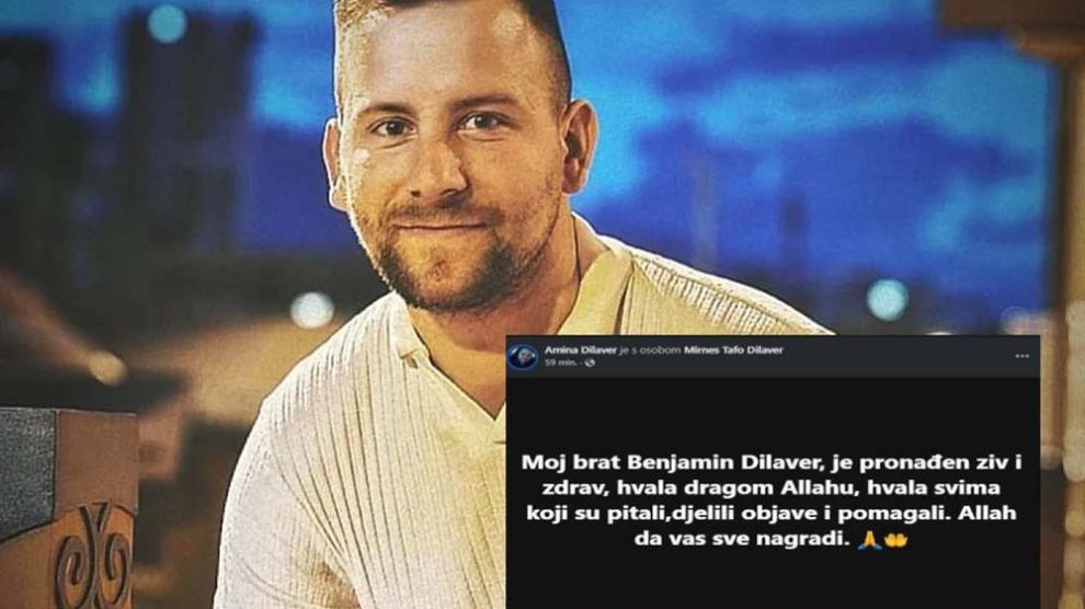 Nestali Zeničanin Benjamin Dilaver pronađen je živ nakon tri dana potrage. Ovu informaciju na Facebooku je objavila njegova sestra Amina Dilaver koja je istakla da je Benjamin pronađen živ. “Moj brat Benjamin Dilaver, je pronađen ziv i zdrav, hvala dragom Allahu, hvala svima koji su...