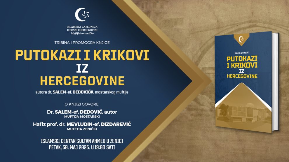 Muftijstvo zeničko organizira tribinu i promociju knjige koja će se održati u petak, 30. maja 2025. godine, s početkom u 19:00 sati, u Islamskom centru Sultan Ahmed u Zenici. Na ovom značajnom događaju govorit će autor knjige, dr. Salem-ef. Dedović, mostarski muftija, te hafiz prof. dr...