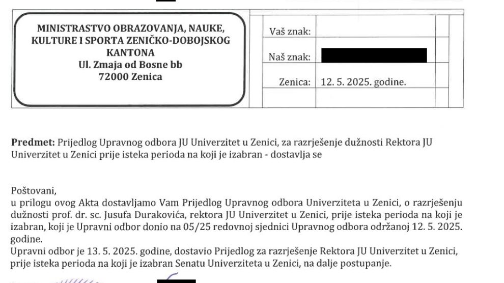 Zenicablog je sinoć (nedjelja) ekskluzivno objavio informaciju o zahtjevu Upravnog odbora Univerziteta Zenica koji od Senata ove visokoškolske ustanove traži da razriješi aktuelnog rektora Jusufa Durakovića. CIJELI TEKST I REAKCIJU REKTORA PROČITAJTE OVDJE. Zenicablog noć uoči glasanja...