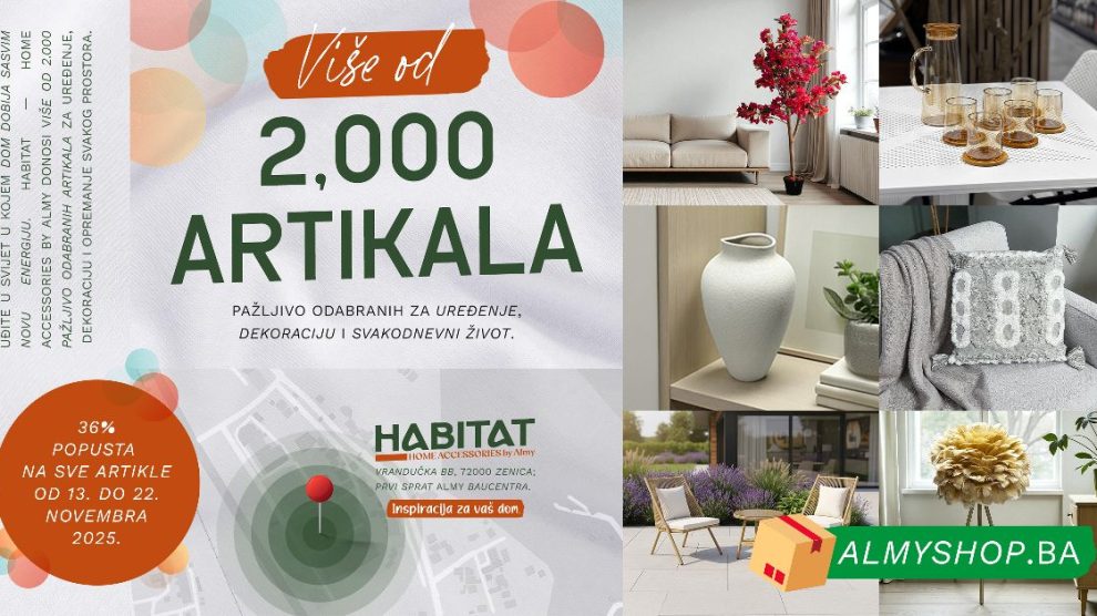 Habitat — Home Accessories by Almy: Više od 2.000 artikala za uređenje, dekoraciju i opremanje doma na jednom mjestu! Zenica je dobila moderno, inspirativno i savremeno mjesto za sve ljubitelje uređenja enterijera — Habitat — Home Accessories by Almy, smješten na prvom spratu Almy...