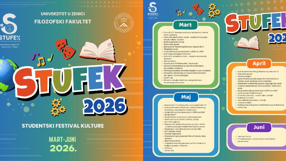 Otvaranjem STUFEK-a 2026 započinje jedinstvena manifestacija na Filozofskom fakultetu Zenica, koja će tokom narednih sto dana okupljati studentice i studente i biti most između akademske i društvene zajednice kroz razmjenu ideja, znanja i kreativnih inicijativa. Studentski festival...