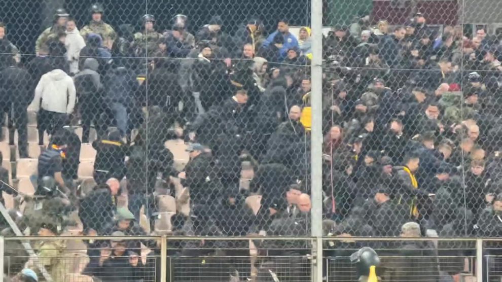 Po završetku utakmice grupa rumunskih navijača pokušala je izazvati incident skandiranjem “Srbija”. Nakon što su udaljili domaće navijače, policija je brzo intervenisala i učutkala gostujuće navijače. Pogledajte intervenciju koju je zabilježila ekipa Nove BH. Pogledajte ovu...